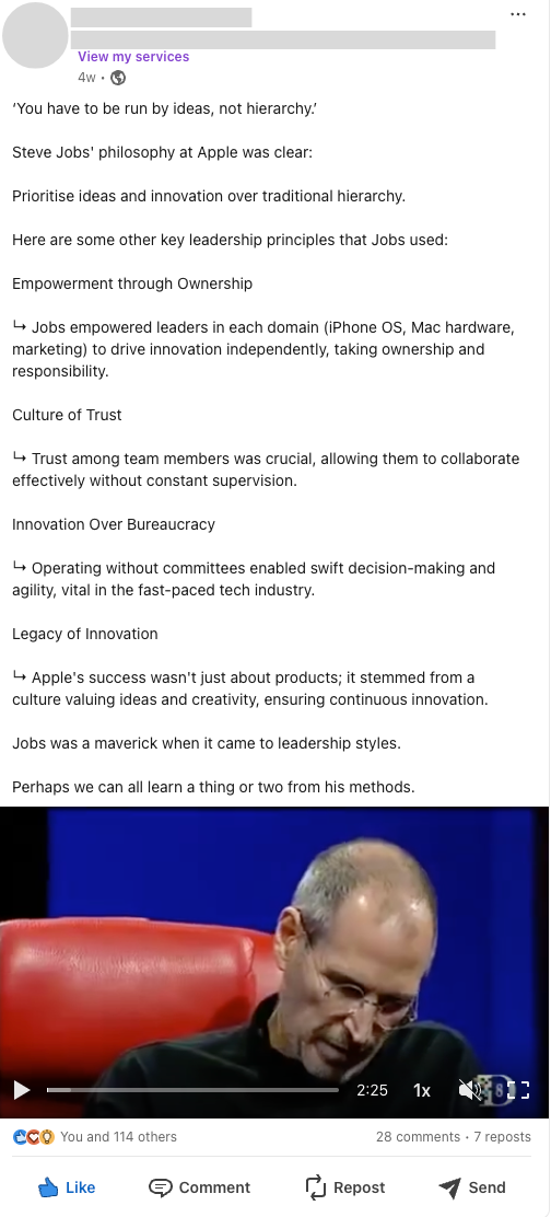 From there, I’ll produce high-quality LinkedIn posts for each client, mimicking their tone of voice and portraying their opinions across their profile. Thanks to my in-depth understanding of LinkedIn, I’m able to carefully craft posts that both reflect the clients’ personality and views, whilst ensuring the content receives high engagement and maximises reach.